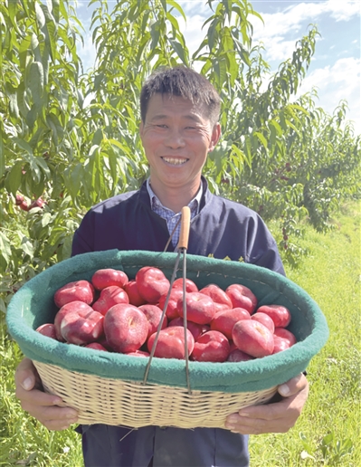 果园原先一直种红枣,因为长辈爱吃,从2018年开始改种蟠桃,至今已有7年。刚开始种时,尝试了不少品种,最后选择了长辈们最爱吃的冰糖蟠桃,一直种到现在。