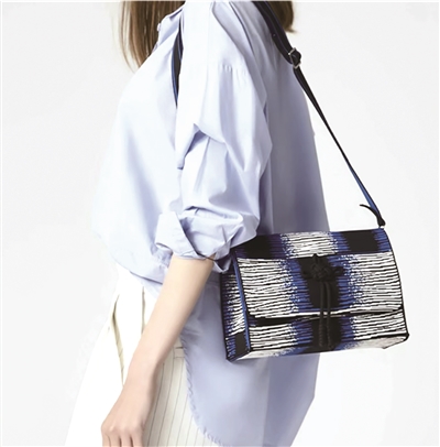 品牌专门做飞织工艺的鞋包,包身和肩带全部采用飞织面料,包形是非常度假的款式,加在一起有一种混搭的感觉,弱化了它的休闲感,更加日常一些,通勤背也很合适。
