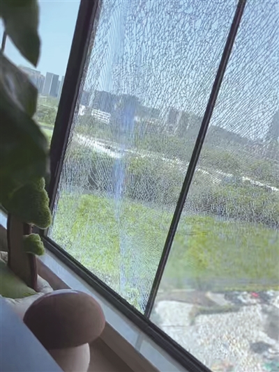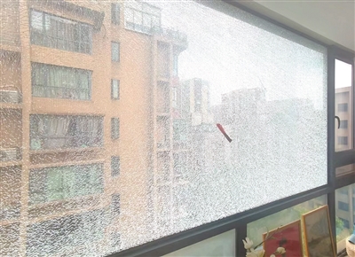 “当时我被吓到了,以为是楼下马路上谁家车子爆胎,过了一阵,才发现是我家客厅的飘窗玻璃自爆了。”