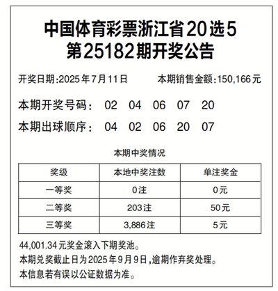 中国体育彩票浙江省20选5