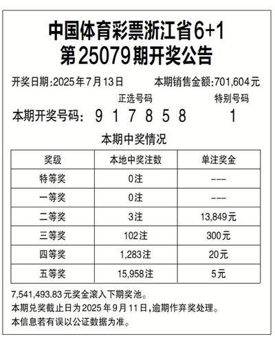 中国体育彩票浙江省6+1