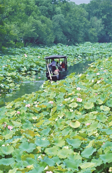 湘湖摇橹船赏荷 橙友“西湖原住民” 摄