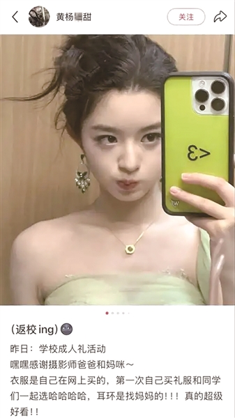 5月11日,00后演员黄杨某甜在社交平台晒出成人礼照片,其佩戴的“天价耳环”引发舆论哗然。