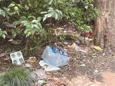 7月14日,陈先生打进85100000热线反映:东新园北面、东新府南面中间有一个绿化带,这里地上全是杂草和垃圾,快递小哥的电瓶车胡乱停放,居民走路不便,是个真正的三不管地带。