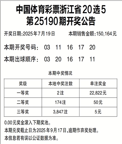 中国体育彩票浙江省20选5