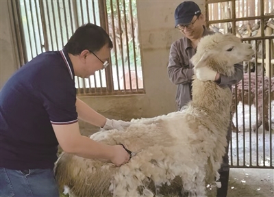 “托尼老师”给羊驼剪毛