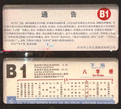 B1 线 站 牌 上 的 调 整通 告 本版摄影 记者 黄煜轩