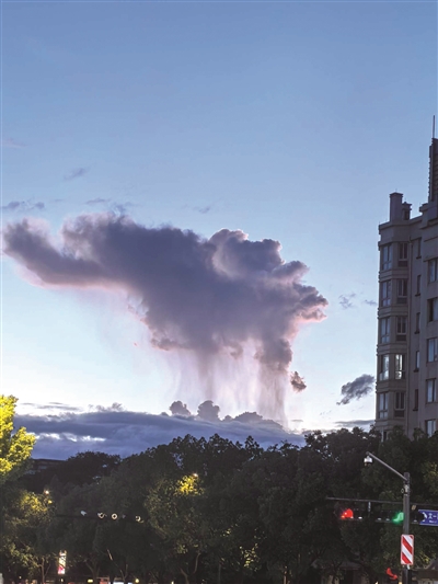 昨天傍晚,橙友“新西洋镜”拍到了神奇一幕:“亲眼看到了什么叫局部气候。杭州城西的上空,一朵蘑菇云,乌黑乌黑的,正大片大片往下掉呢!”