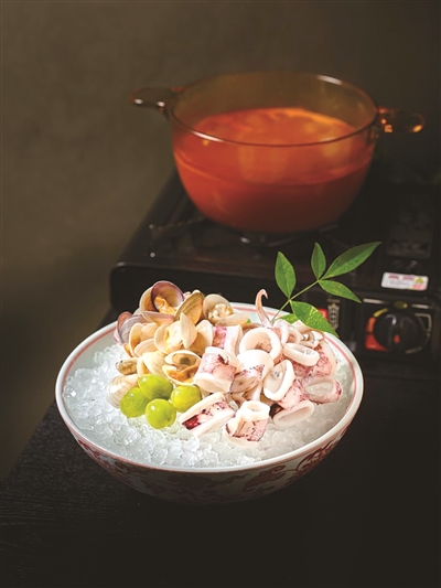 酸汤海鲜 汤汁酸爽开胃,带着微微的辣味,再加上紫苏叶增香提鲜。各种海鲜充分吸收了汤汁的鲜美。