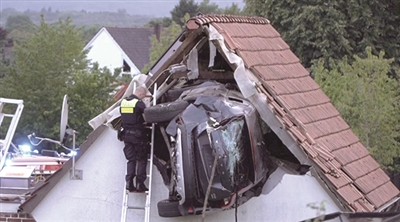 德国警方7月20日表示,一辆汽车在博姆特镇突然驶离道路,侧翻着飞上了一个谷仓的屋顶,造成数人受伤。