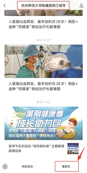 暑期成长助力包如何购买?关注“杭州师范大学附属医院订阅号”,在菜单栏点击“暑期包”,即可直达预约界面,长高、护牙、防近视一次搞定,助力孩子健康成长。
