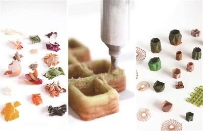选定要打印的物品后,这台3D打印机会自动向食物残渣中添加天然添加剂,并将其转化为一种生物塑料糊状物。随后,这种糊状物会被送入带有自动加热功能的三轴挤出系统,进而被塑造成最终产品。研究人员说,用户即使没有3D打印经验,也可以轻松操作。