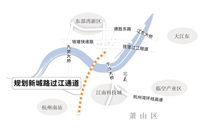而且,新城路过江通道还可以缓解九堡大桥、下沙大桥目前的交通压力。
