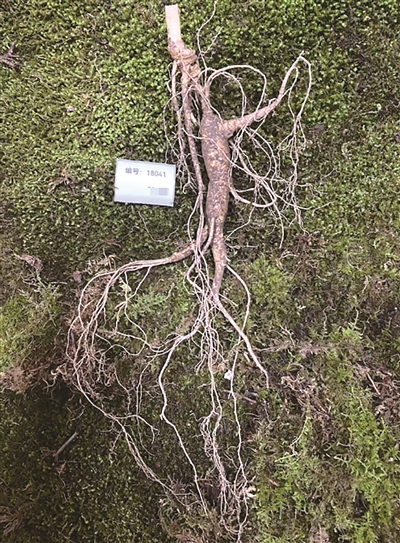 见我们来,他们特地挖到了一株带茎秆的野山参。我接过手,欣赏之时,突然头顶洒下一束光,不偏不倚正好照在这株野山参上,是否老天也在赞叹它的美呢?