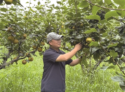 郭有金说,江东镇拥有得天独厚的自然条件,地势南北高、中部低,多丘陵山地的地形,蜜梨生长通风透光良好。这里土壤特别,阳光充足,这些都适合梨树生长。