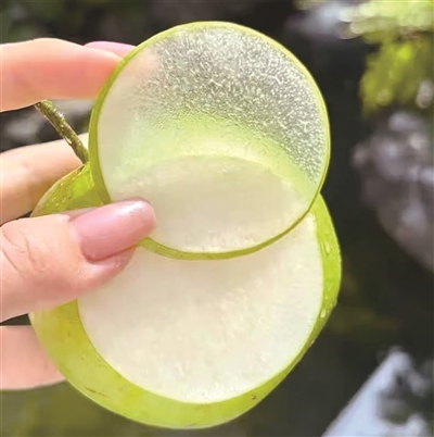 轻轻咬上一口,松脆多汁的果肉瞬间在口中散开,清甜的汁水四溢,仿佛整个夏天的燥热都在这一刻被驱散。