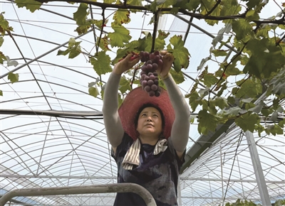 眼下他家园子里的巨峰葡萄口感一天比一天好。每天,青松的老婆游女士都要走上几万步,找到成熟度到位的葡萄,满足大家的需要。