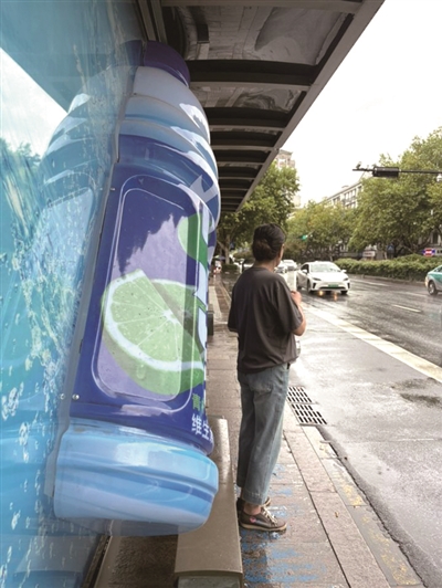 7月30日,橙友“朱二”在橙柿互动App橙柿直通车论坛发帖:见到了受争议的公交候车亭广告牌,目测突出大约一尺,而且刚好位于坐凳上方,起身确实有可能碰头,虽然不硬,却足以吓到。依我看,这半个瓶身没什么意义,完全可以和腰椎间盘一样,非必要不突出。