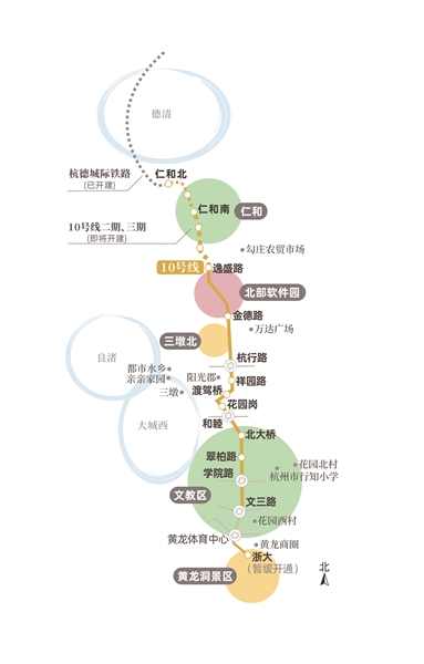 杭州地铁10号线及二期、三期示意图 制图 高薇