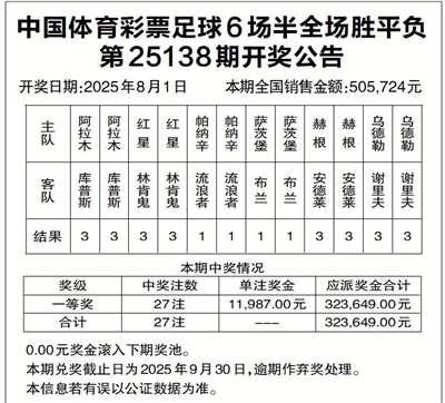 中国体育彩票足球6场半全场胜平负