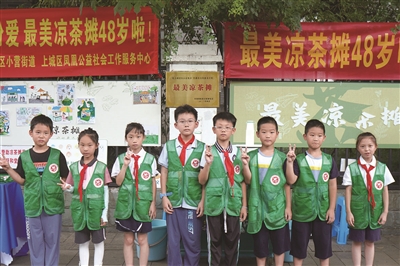 7月22日,在上城区小营街道章家桥公交站旁,都市快报的狮子小记者们开启了第二期“最美凉茶摊”暑期假日小队实践活动,继续将这份清凉与爱心传递给每一位过往的行人。
