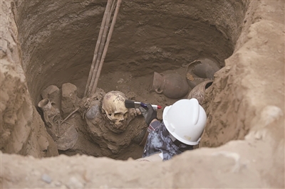利马管道工人经常能发现古代文化遗迹,不久前刚挖出了一具千年木乃伊。