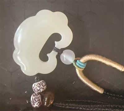 虽然加工师傅说,在他看来,这块玉料是不值钱的,因为有好几根裂纹。但这是我第一次自己捡的玉料,很有纪念意义,也就收藏下来了。阿拉玛斯玉的油性特别好,平时摸摸玩玩也不错。