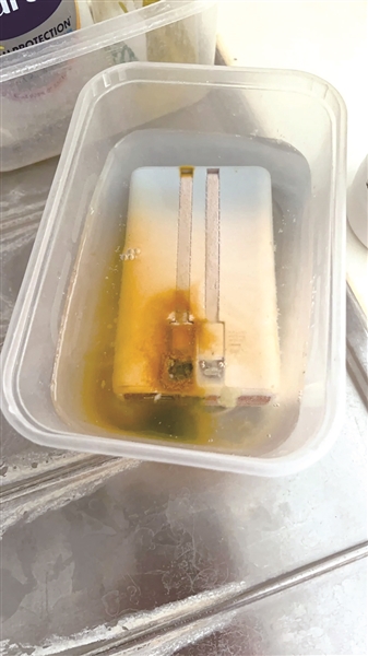 有网友把充电宝在盐水里浸泡24小时后