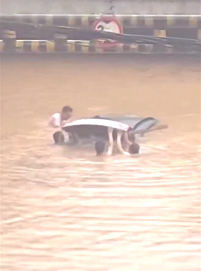 广东东莞遭遇强降雨,部分地区出现内涝。8月5日,塘厦镇一辆小车被水冲走,司机受困车内,情况危急。在场警员发现情况后,立即与周边民众下水救援,在众人合力下,成功将受困司机从车内救出。据南方都市报