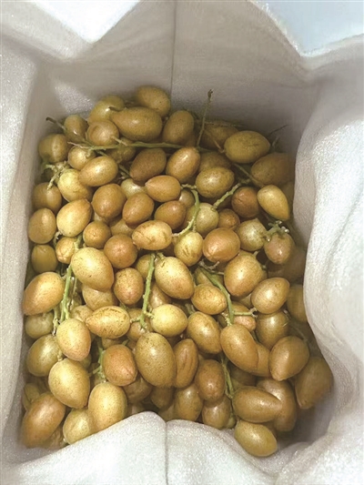 新鲜的黄皮果就不那么好买了,记者走访了朝晖路的几家水果店都没有找到黄皮,最后在盒马鲜生店里终于看到了黄皮果的身影,19.9元300克,折合每斤要33元,价格还是比较贵的。店里还有一款黄皮云雾绿茶在售。