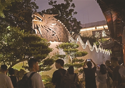 8月8日晚间,上海豫园夜游正式启幕。通过融合现代光影技术与古典园林艺术,运用灯光点亮、动态投影与光雕投影等形式,游客在豫园可体验“一步一景一画卷,移步换景画中游”的精彩旅程。