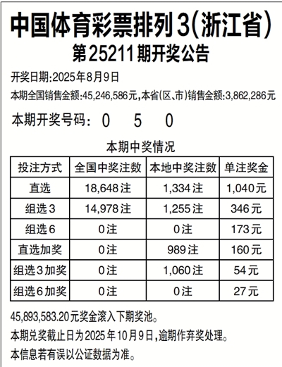 中国体育彩票排列3(浙江省)