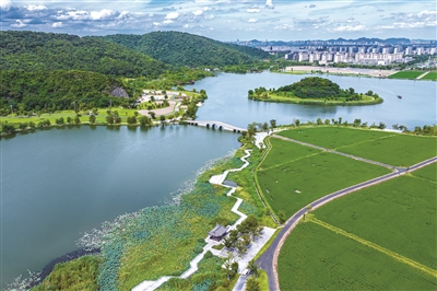 盛夏时节的铜鉴湖,草木葱茏,如诗如画。 本版摄影 记者 陈中秋