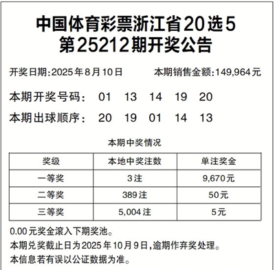 中国体育彩票浙江省20选5