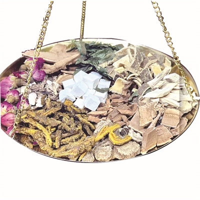 组方:合欢花、玫瑰花、灵芝、人参叶、黄连、肉桂等十余种中药。