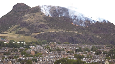 苏格兰消防和救援服务部门发言人说,10日下午4点05分接到亚瑟王座发生火灾的报警,调集4辆消防车及专业资源前往灭火。到11日,仍有两辆消防车在现场,工作人员在继续扑火。