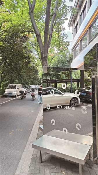 8月14日,橙柿直通车记者来到橙友反映的中河南路29号,在路边看到两组座椅,每组座椅有三张长凳,围成一个三角形,座椅的靠背,使用的是反光镜材质。
