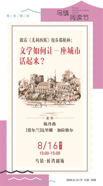 当詹姆斯・乔伊斯笔下的都柏林晨雾,与乌镇石桥上的流岚相遇;当陈丹燕的文学行走笔记,与达里娜的乔伊斯研究心得碰撞,蚌湾剧场将成为连接两座文学之城的桥梁,让《尤利西斯》的百年回响在水乡慢读中,焕发新的生命力。两位嘉宾将从以下视角展开分享与解读:陈丹燕踏着布卢姆的足迹重走都柏林时,哪些街巷的光影让文字里的孤独有了具象模样?达里娜如何以乔伊斯文化中心的视角,让《尤利西斯》的文学密码走近当代读者?当意识流的都柏林漫游遇见乌镇的枕水慢读,两座被文学浸润的城市会碰撞出怎样的共鸣?