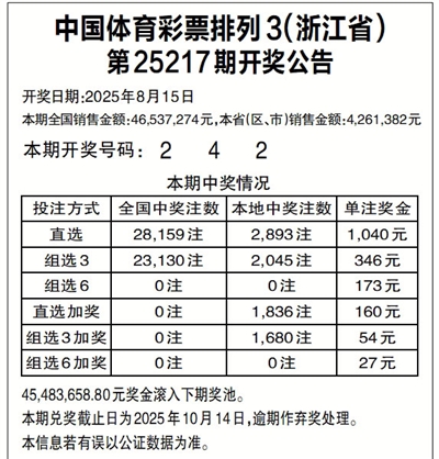 中国体育彩票排列3(浙江省)