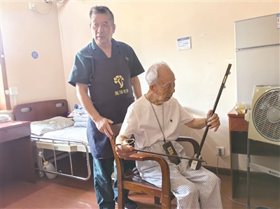 李爷爷说:“他们三缺一,我就去了,现在已经学会了,但还摸不出字。在这里安静快乐,有人陪,子女们都有自己的事情,不想太麻烦他们。现在就是想把这个京胡修修好,湖州那边可以修,不知道杭州这边有没有人会修。”