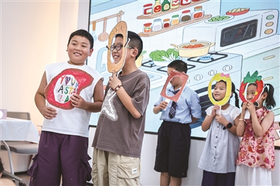 孩子们在夏令营活动中表演情景剧《一桌家常》