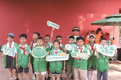 活动中,小记者们穿梭在人流中,为游客、保安、过往市民递上一杯杯凉茶,稚嫩的声音说着“请喝杯凉茶解解暑”。一张张笑脸与红墙、古建构成了德寿宫前最动人的风景线。带着孩子来杭旅游的张女士感叹:“没想到在古迹体验到了最地道的杭州温情。”