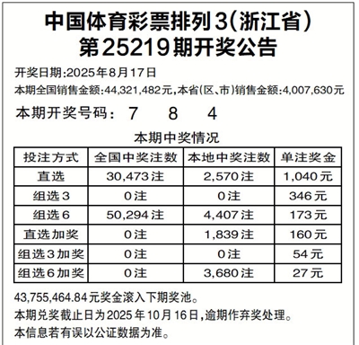 中国体育彩票排列3(浙江省)