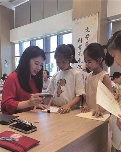 8月17日上午,浙江文学馆迎来一场别开生面的诗词讲座。在四楼的智慧大讲堂里,从小在西湖边长大的知名女诗人、作家卢文丽现身讲台,为浙江文学院(浙江文学馆)的小学员们带来一堂题为《花开四季:跟着诗词游西湖》的精彩课程。来自杭州市各小学的学生们沉浸其中,不时被卢老师生动幽默的讲解逗笑。