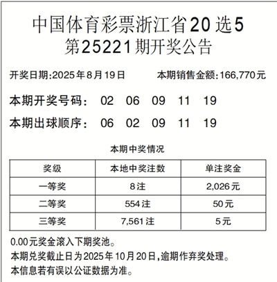 中国体育彩票浙江省20选5