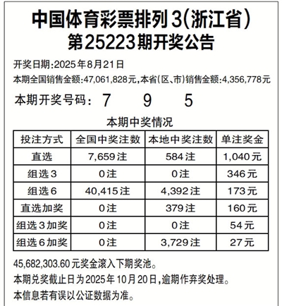 中国体育彩票排列3(浙江省)
