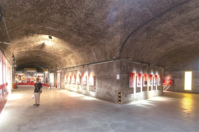 市民在四牌楼防空洞看展 本版摄影 记者 夏阳