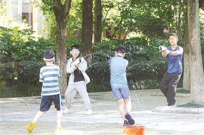 昨天早上6点30分,家住天阳九筑的王同学早早起床,洗漱完,就开始背书,背到7点多,他收拾收拾准备下楼,小区里有场一年一度的“水枪大战”。