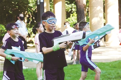 每到暑假,这个小区的活动很多,上周日(8月17日),天阳九筑的物业公司天阳物业,买了100多斤活鱼倒进小区水池让业主免费抓(详见都市快报8月18日A03版),为小区业主们带来一场夏日狂欢,这周他们准备让孩子们痛快玩一场水枪大战。参加“水枪大战”的孩子,都是跟着业主上官光将晨跑的,完成晨跑30天打卡的小朋友,可以在上官光将这里领到一支水枪,参加这次水枪大战。