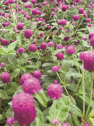 千日红也叫火球花,是多年生草本植物。它花色鲜亮、花形特别,有红、紫、粉等颜色,最厉害的是花期能长达好几个月,“千日红”的名字就是这么来的。原产美洲热带地区,特别耐热,是夏日园林绿化的主角之一。